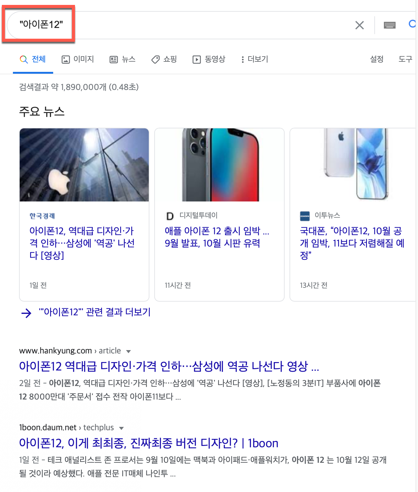 ex) "아이폰12" / 아이폰12를 무조건 포함한 검색