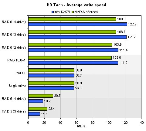 무정지 구현을 극도로 추구하면 RAID 1, 고성능 구현을 극도로 추구하면 RAID 0이 되며, RAID 5, 6은 둘 사이에서 적당히 타협한 형태. RAID 10이나 RAID 01과 같이 두 가지 방식을 혼용하는 경우도 있습니다.