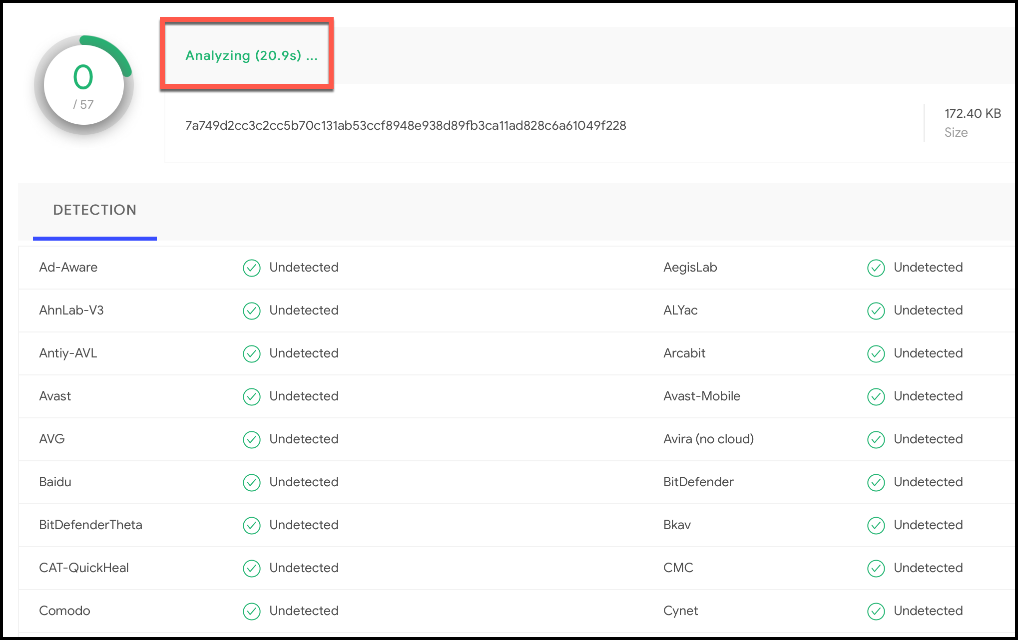 Undetected 미탐지라고 나오네요