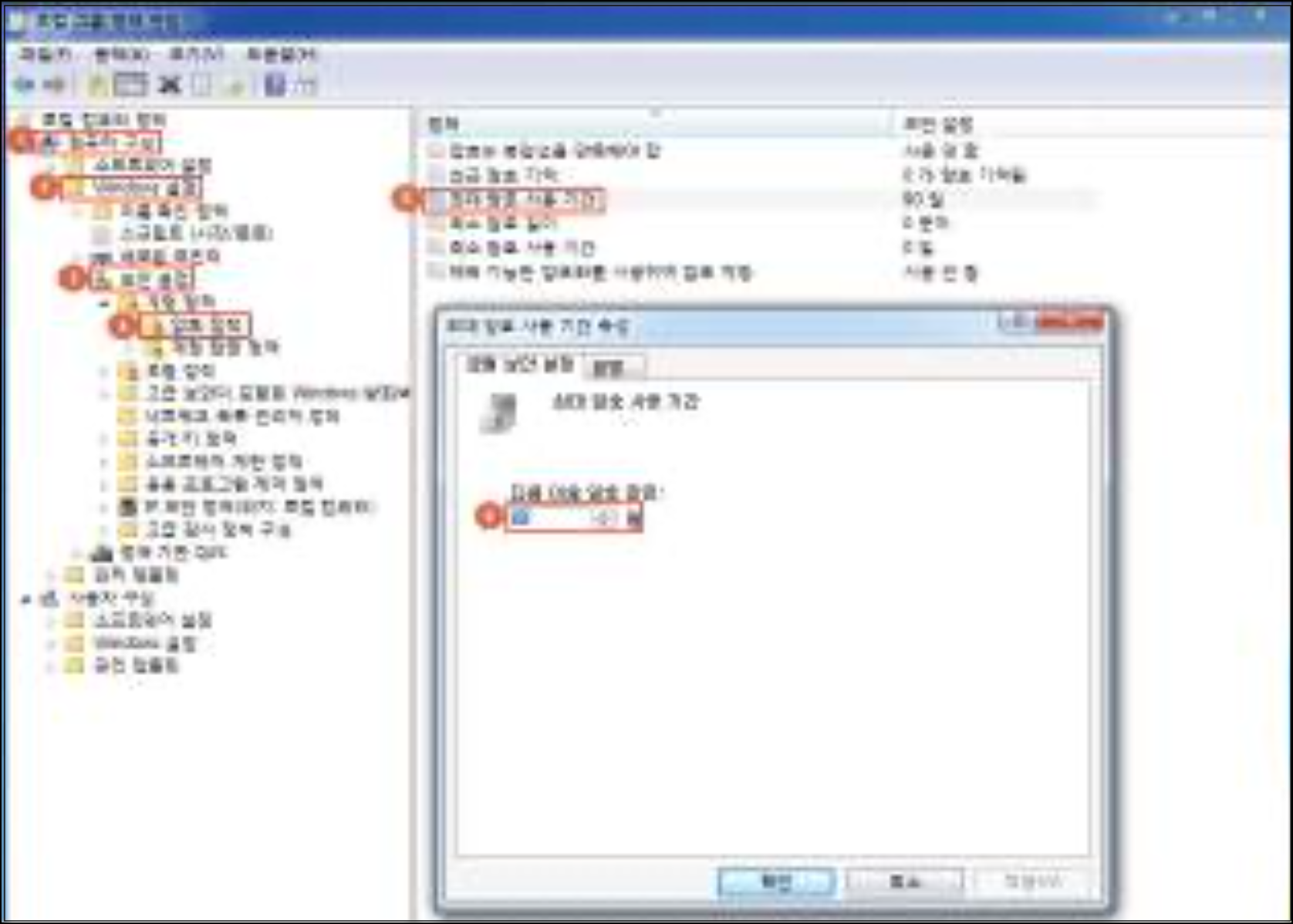 - 최소한 최대 암호 사용기간 "90일" 설정