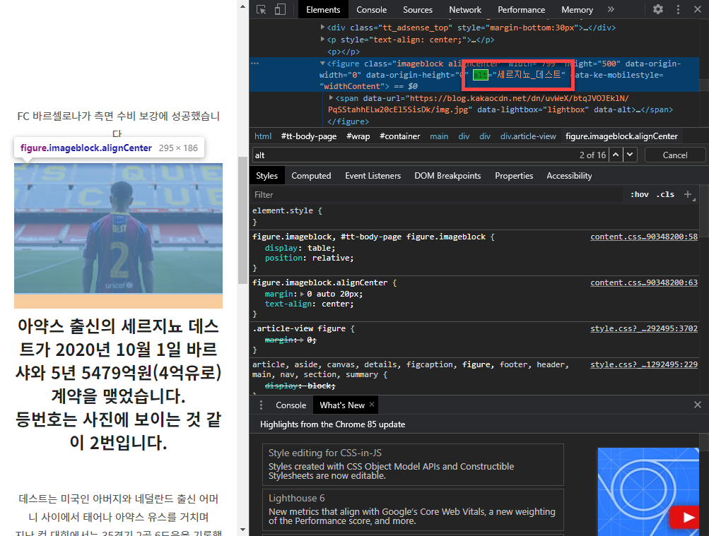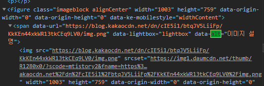 발행해서 코드를 보시면 위와 같이 data-alt 태그로 들어가 있는 것을 확인할 수 있습니다.