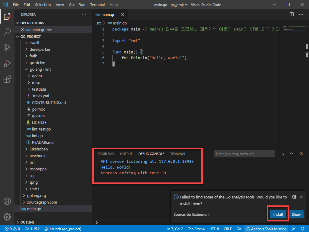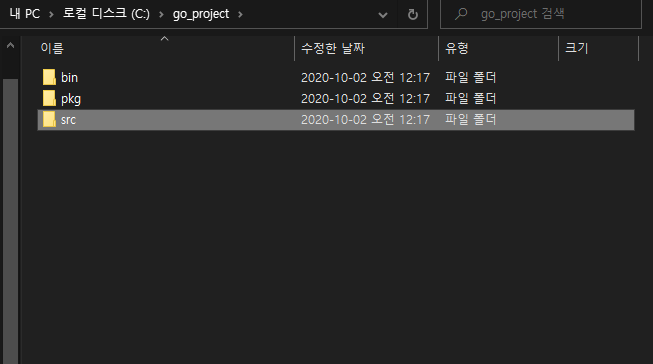 c드라이브에 go_project 라고 프로젝트 폴더를 만드시고