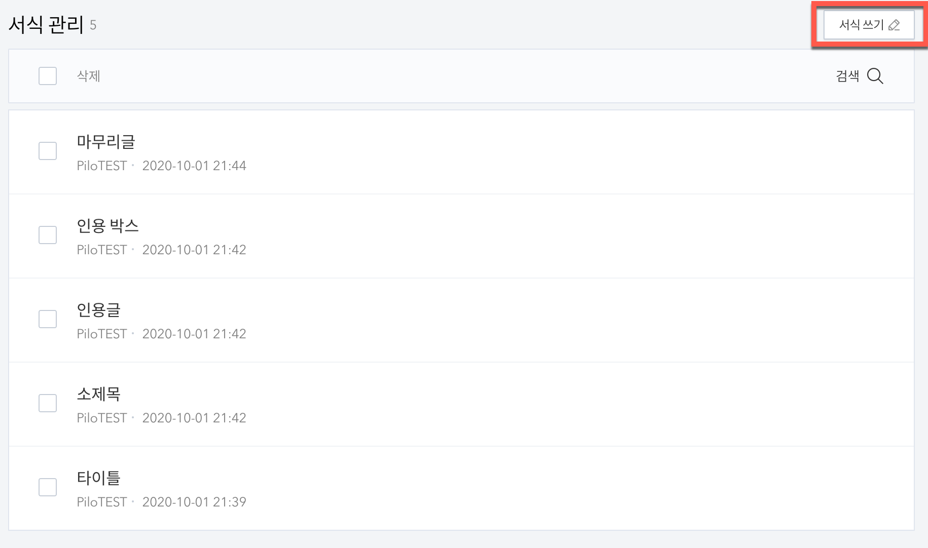 서식을 만들어 주기 위해 오른쪽 위에 "서식 쓰기"를 클릭해주세요