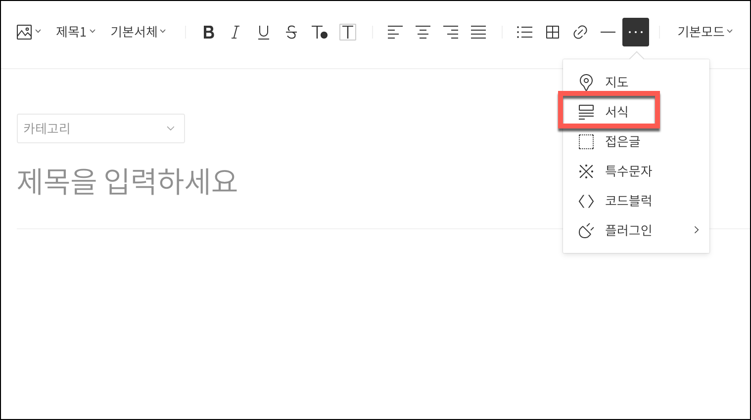 글쓰기로 들어가셔서 오른쪽 위에 보시면 ••• 으로 보이는 부분을 클릭해 주세요