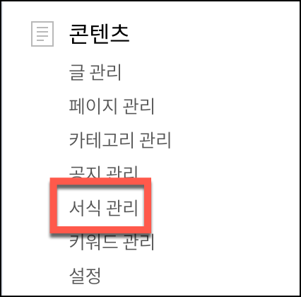 관리자 페이지에서 왼쪽 메뉴바에 보시면 "서식 관리"라는 메뉴가 보이실 텐데 클릭해줍니다.