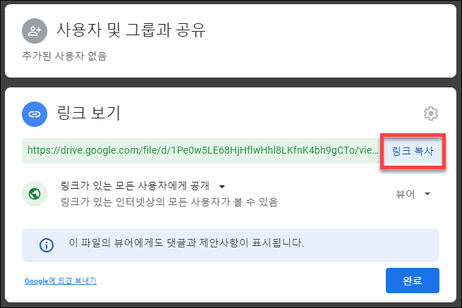 링크가 생성될 건데 저랑 같이 보이게 설정을 해주세요