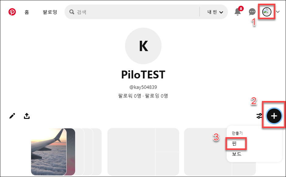 3. 보드는 게시판 핀은 게시물을 뜻합니다