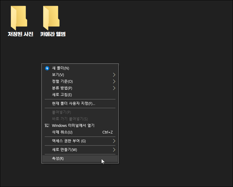 만약 특정 폴더가 이런 현상이 생기신다면 그 폴더로 이동해서 마우스 우클릭을 해줍니다.