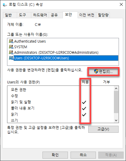 쓰기권한만 주시면 되지만 어차피 일반적인 PC 사용자라면