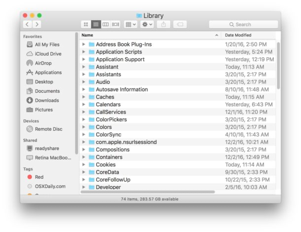 아니면 command+shift+G 로 폴더이름을 입력해서 이동하는 방법도 있어요