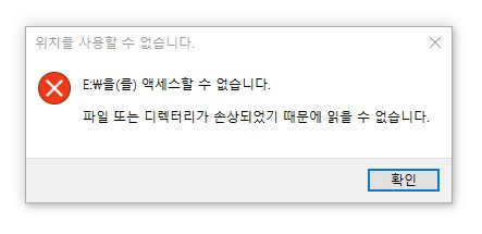 파일 또는 디렉터리가 손상되었기 때문에 읽을 수 없습니다,