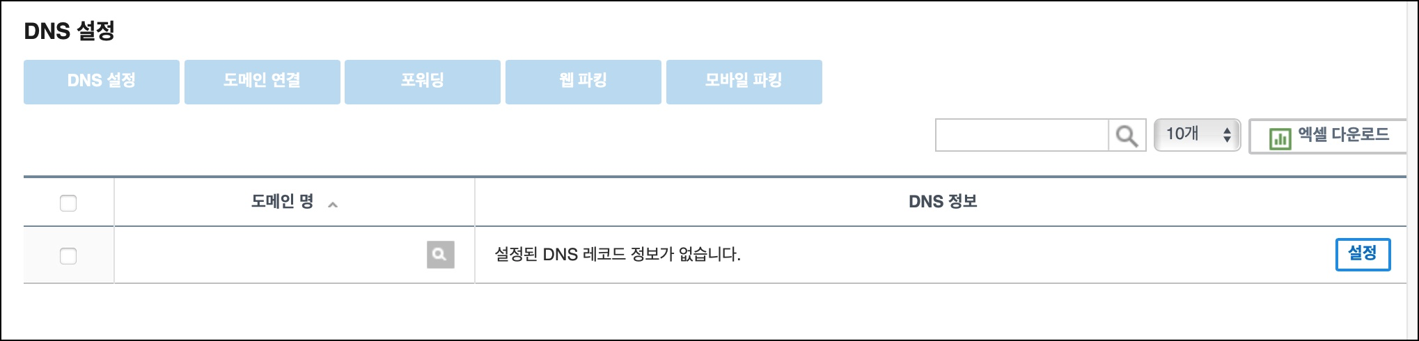 처음에는 물론 설정된 DNS 레코드 정보가 없습니다. 라고 뜰거예요