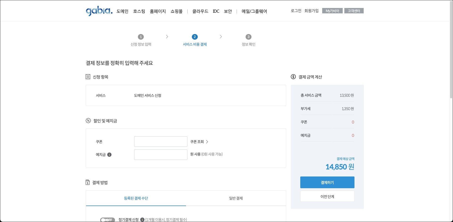 지금은 할인기간이라 수수료 포함 14,850원으로 .com 주소를 받을 수 있어요