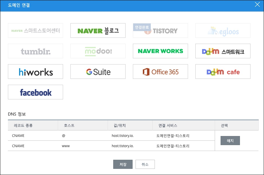 티스토리는 DNS 설정이 쉽게 잘 되어 있어요