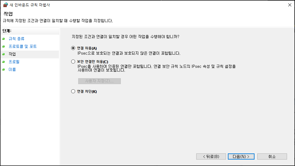 편한게 우선이라면 연결 허용을 해주시고 다음으로 가주세요