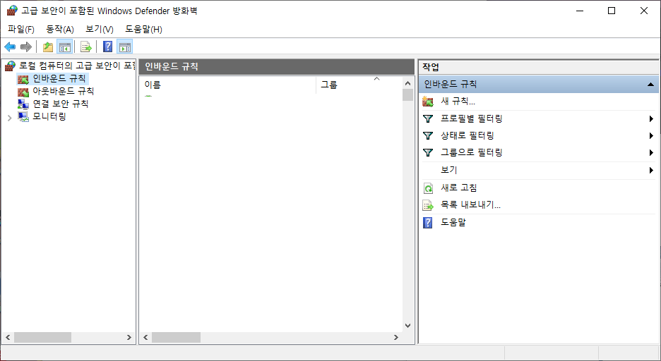 여기서 인바운드 아웃바운드 설정을 해주시려면
