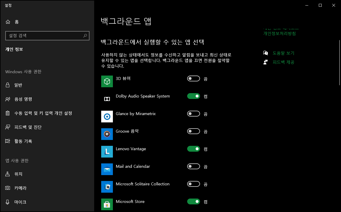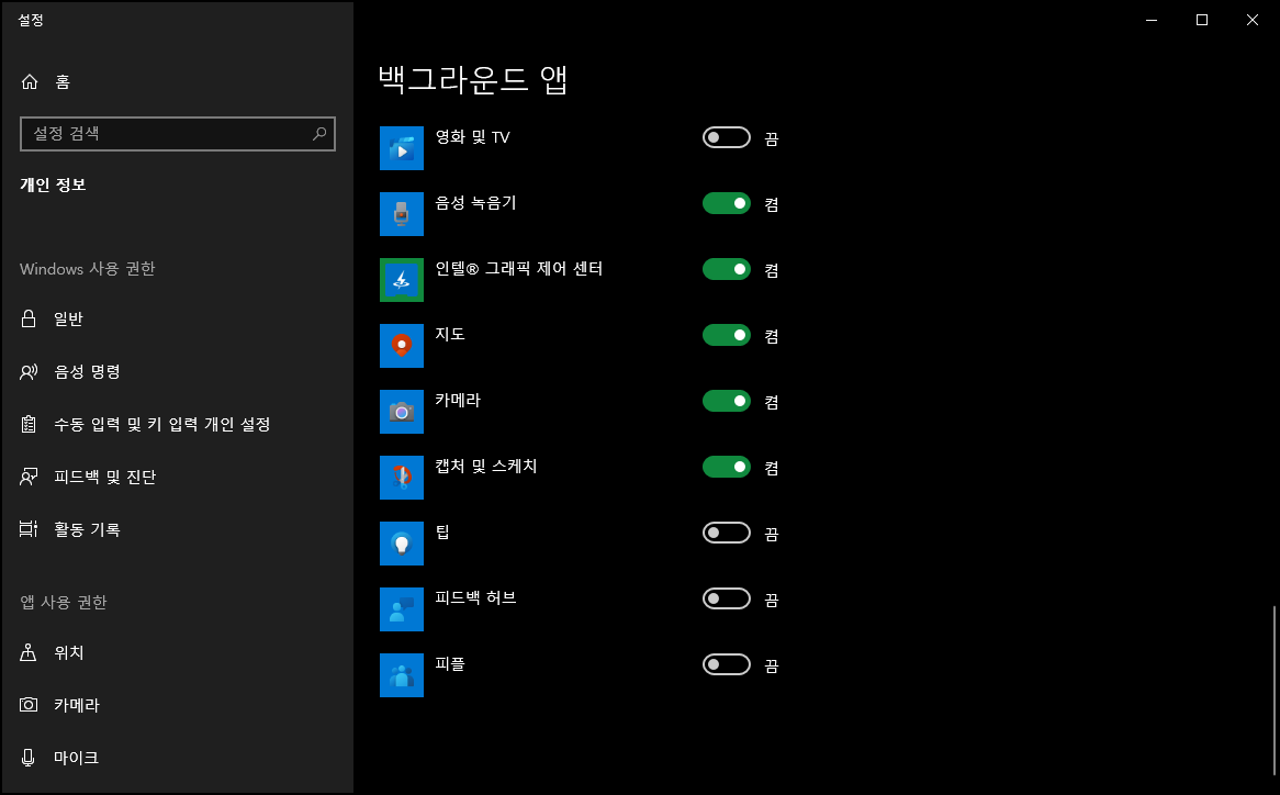 윈도우10 설치 후 최적화 하는 방법 / 꿀팁! / 백그라운드 앱 실행 해제