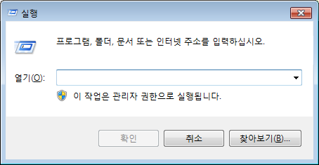 윈도우 키 + R : 윈도우 실행창 실행 / 시작-실행