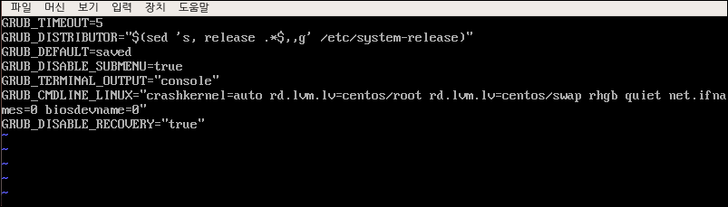 아래 부분에 GRUB_CMDLINE_LINUX 부분 뒷 부분에