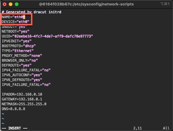이름을 원하는 인터페이스명(eth0) 으로 바꿔주세요