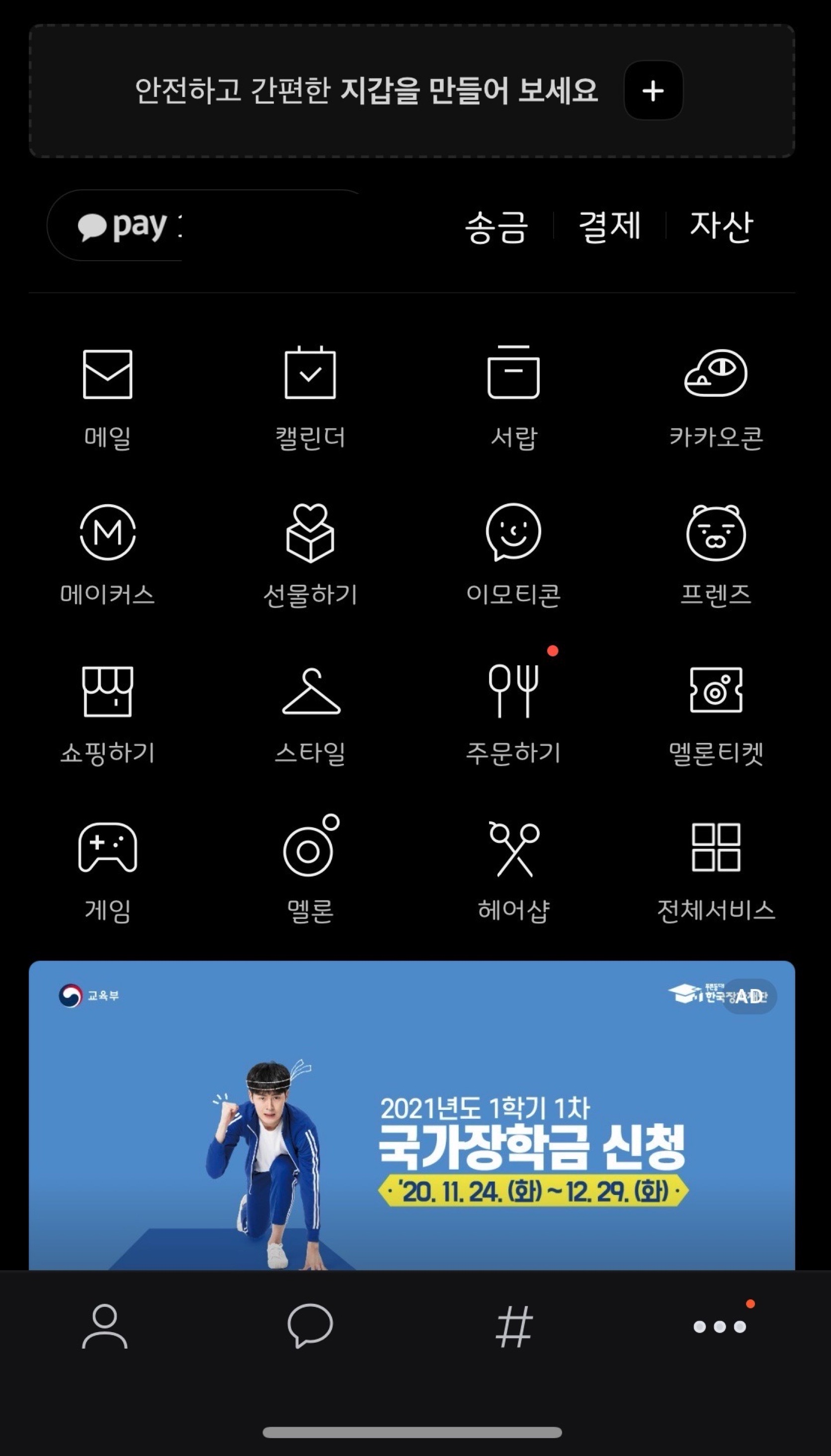 카카오톡에서도 '지갑' 이라는 부분이 생겻는데요