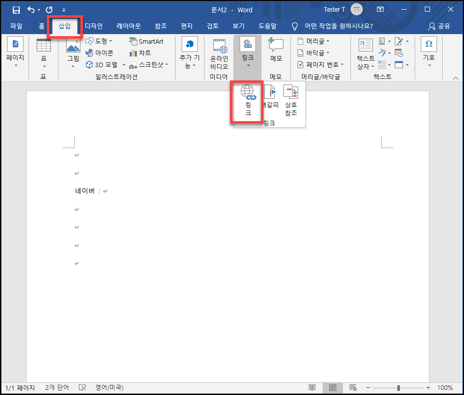 삽입에서 링크를 들어가셔서 삽입이 가능합니다