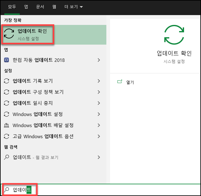 그 다음 윈도우 업데이트 확인을 해주세요