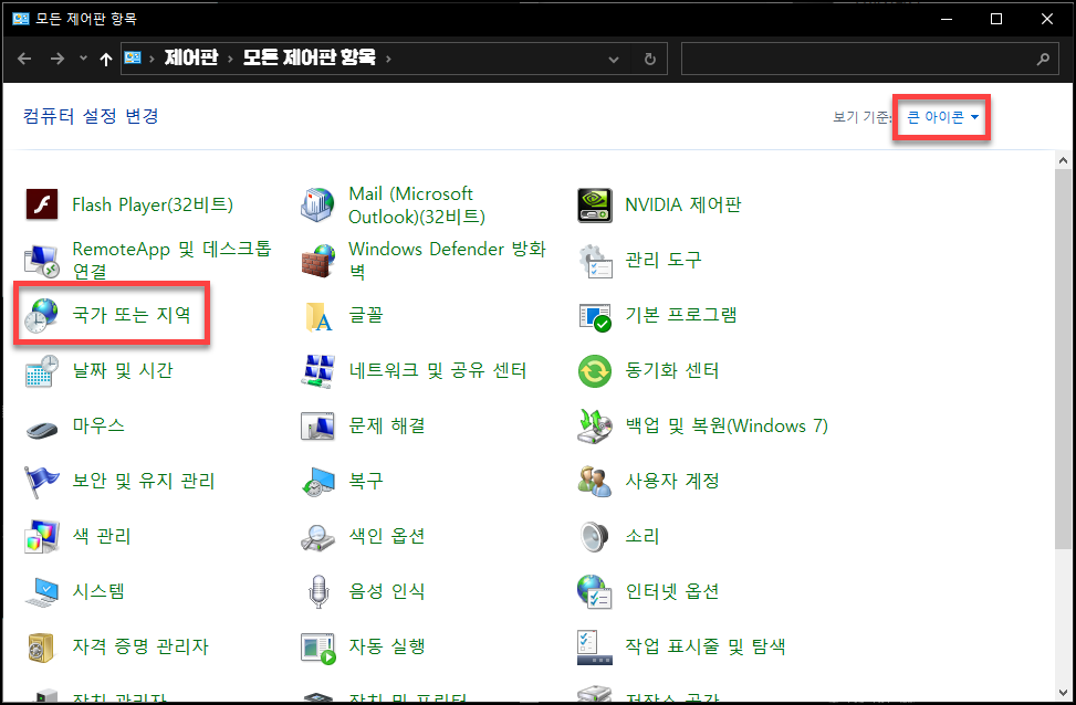 Windows 표시 언어가 한국어로 되어 있는지 확인해 주세요