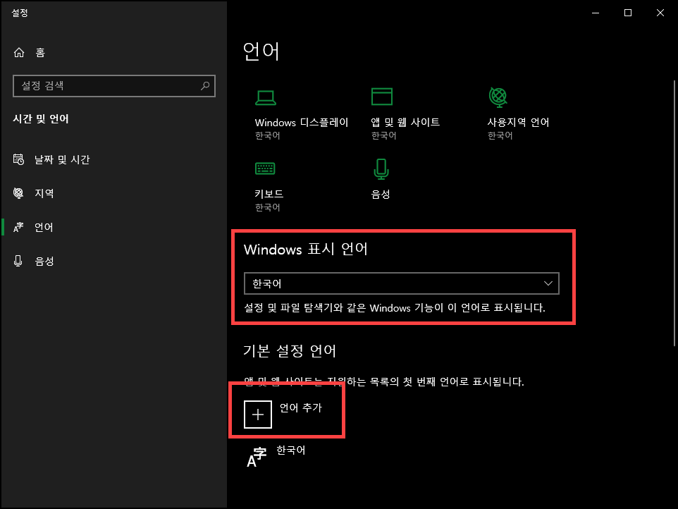 윈도우10 기본 설정 한국어로 설정하는 방법, Windows10 한글로 바꾸는 방법
