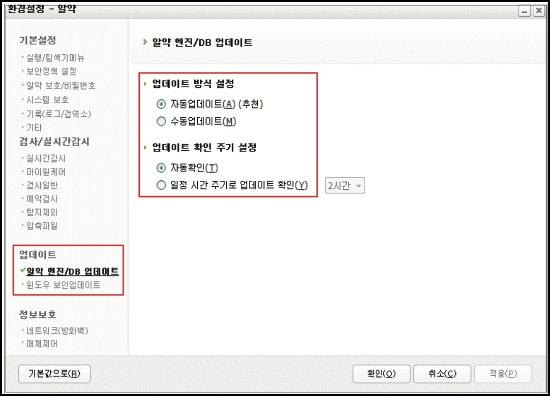Step 1) V3 Internet Security 8.0 설치 여부 및 업데이트 설정 확인