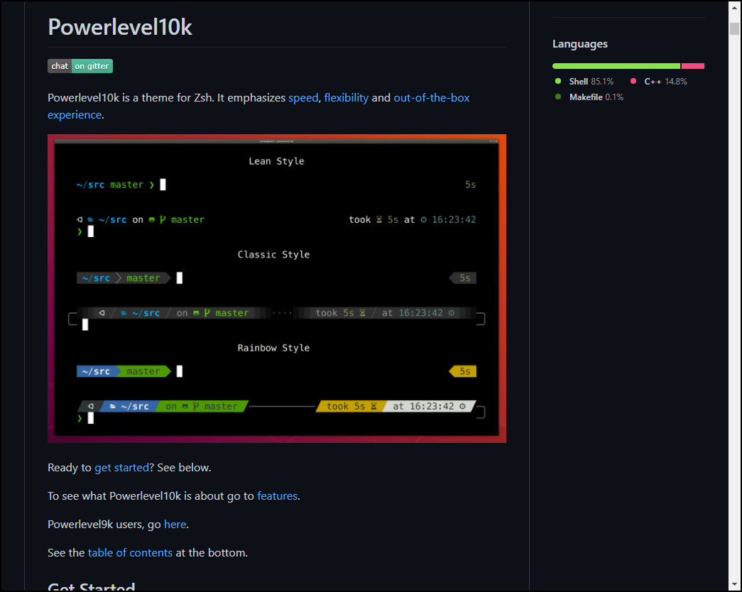 p10k 또한 github로 지원하고 있습니다