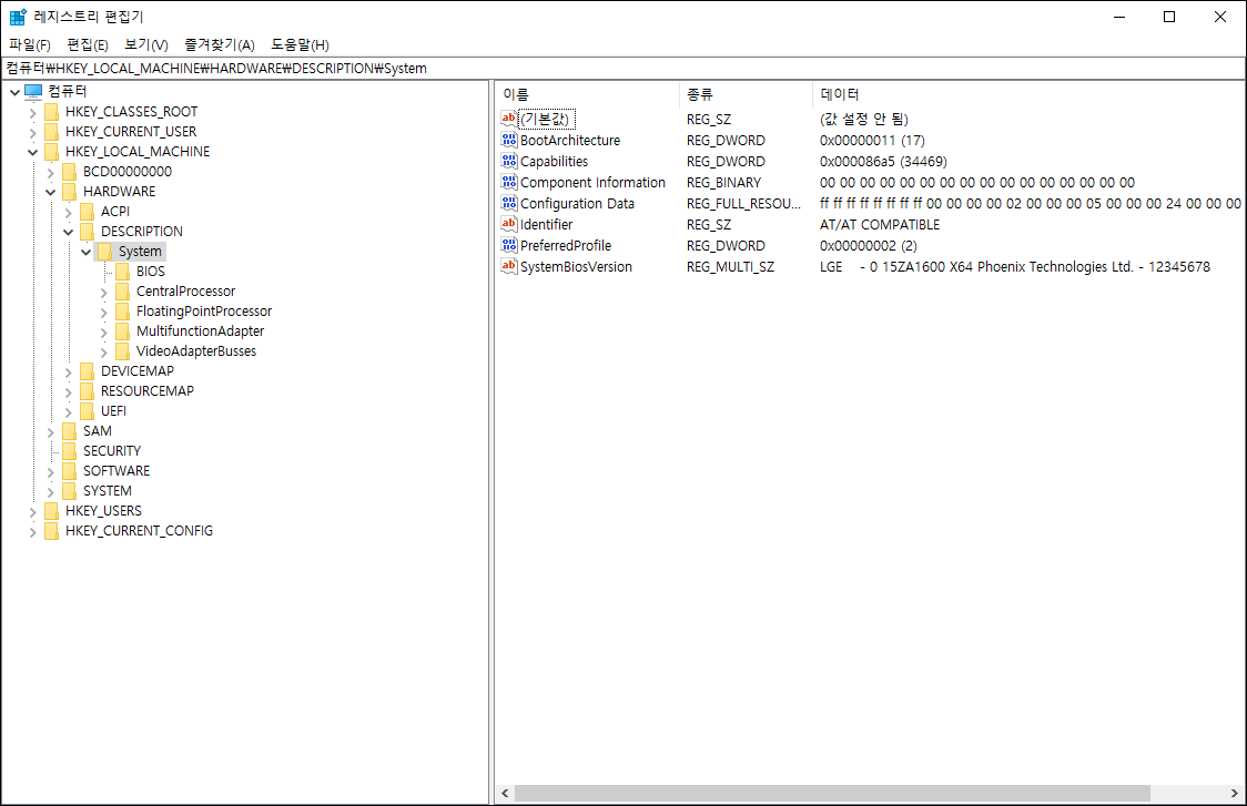 여기서 "SystemBiosVersion" 항목을 찾아주세요