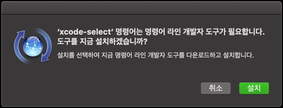 명령어 라인 개발자 도구를 설치하게끔합니다