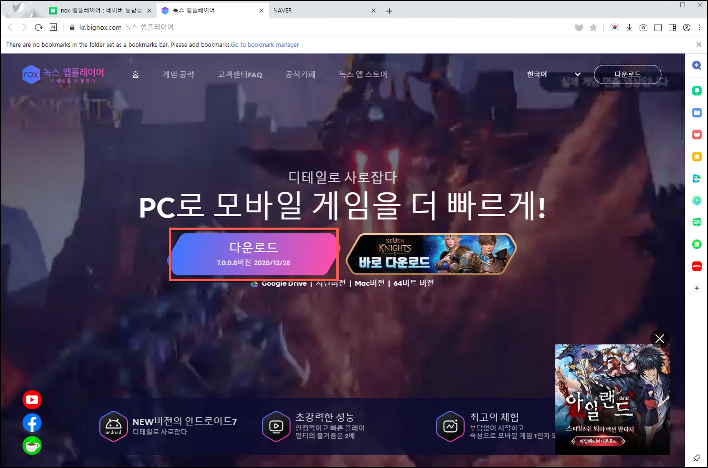이제 빨리 게임을 하기 위해 녹스 플레이어를 다운 받아 볼게요