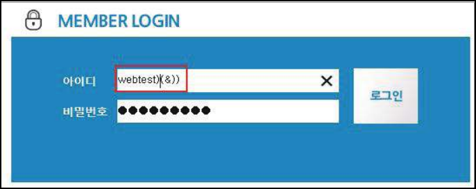 - 취약 : 임의의 LDAP 쿼리 입력에 대한 검증이 이루어지지 않아 변조된 쿼리가 실행되는 경우