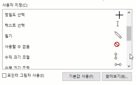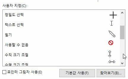 마우스 포인터의 그림자 표시에 관련된 옵션입니다