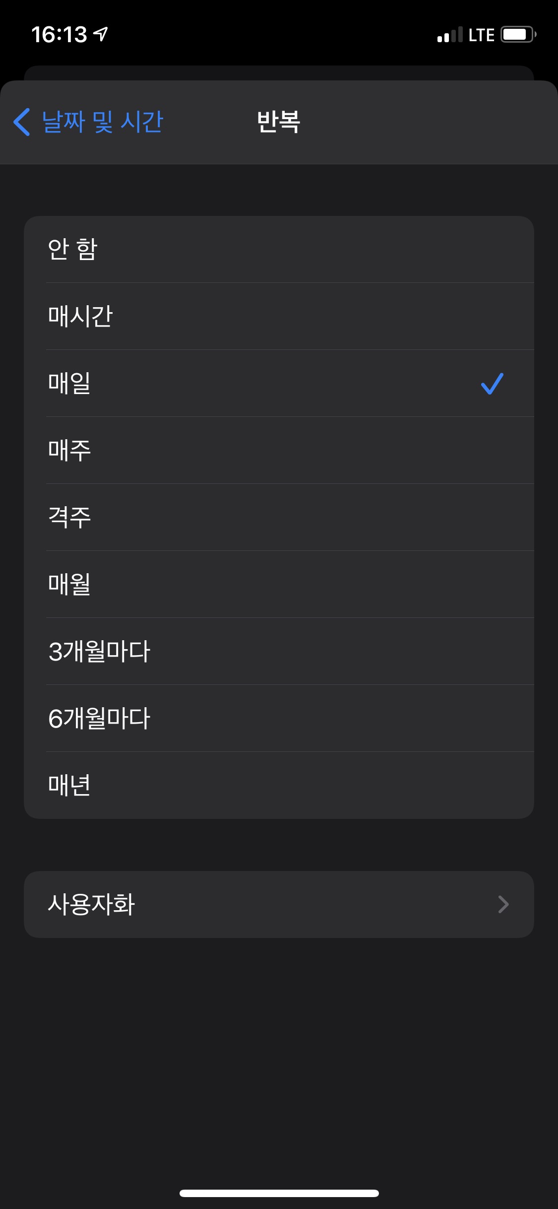 미리알림에서 보면 매일 알림 기능은 바로 보이는데