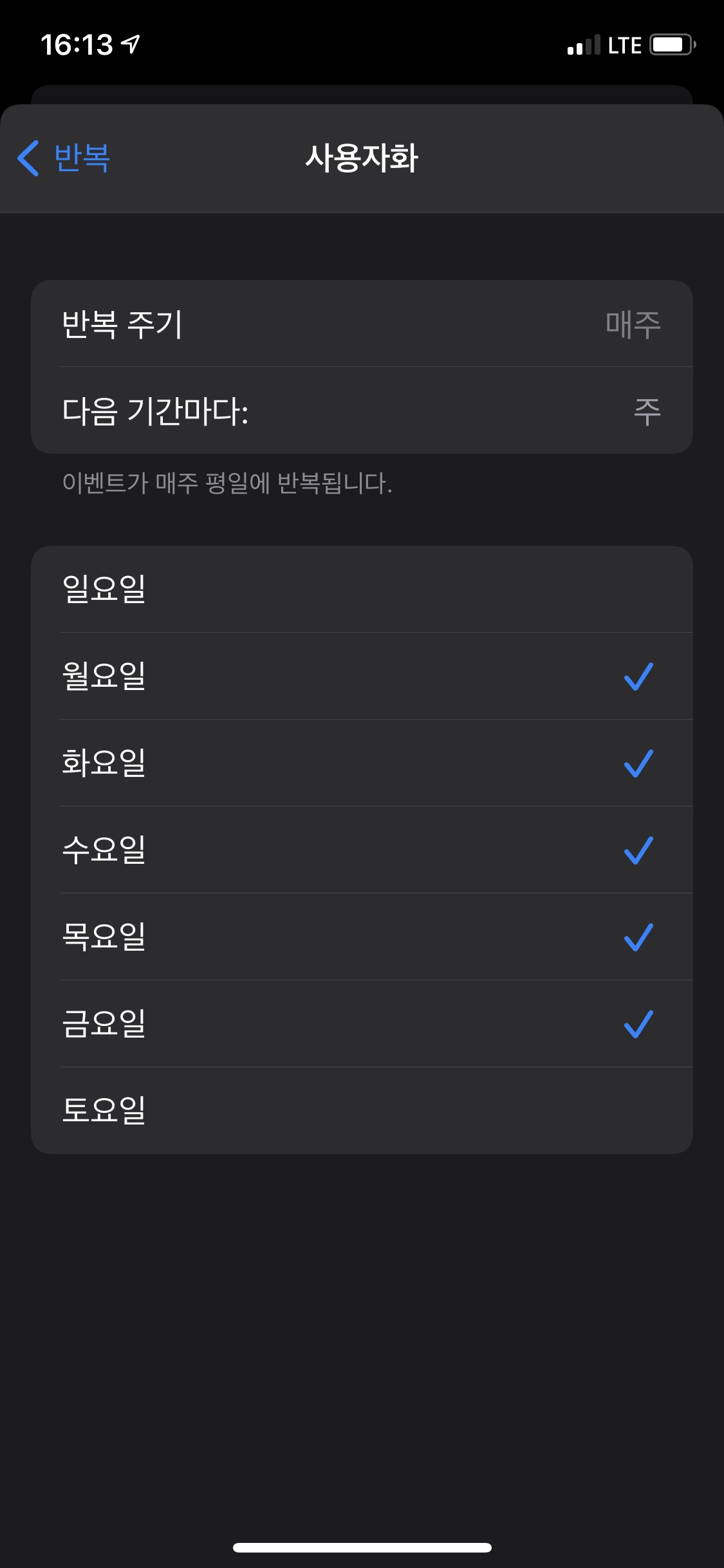 평일 알림 기능은 숨겨져 있는(?) 기능이라
