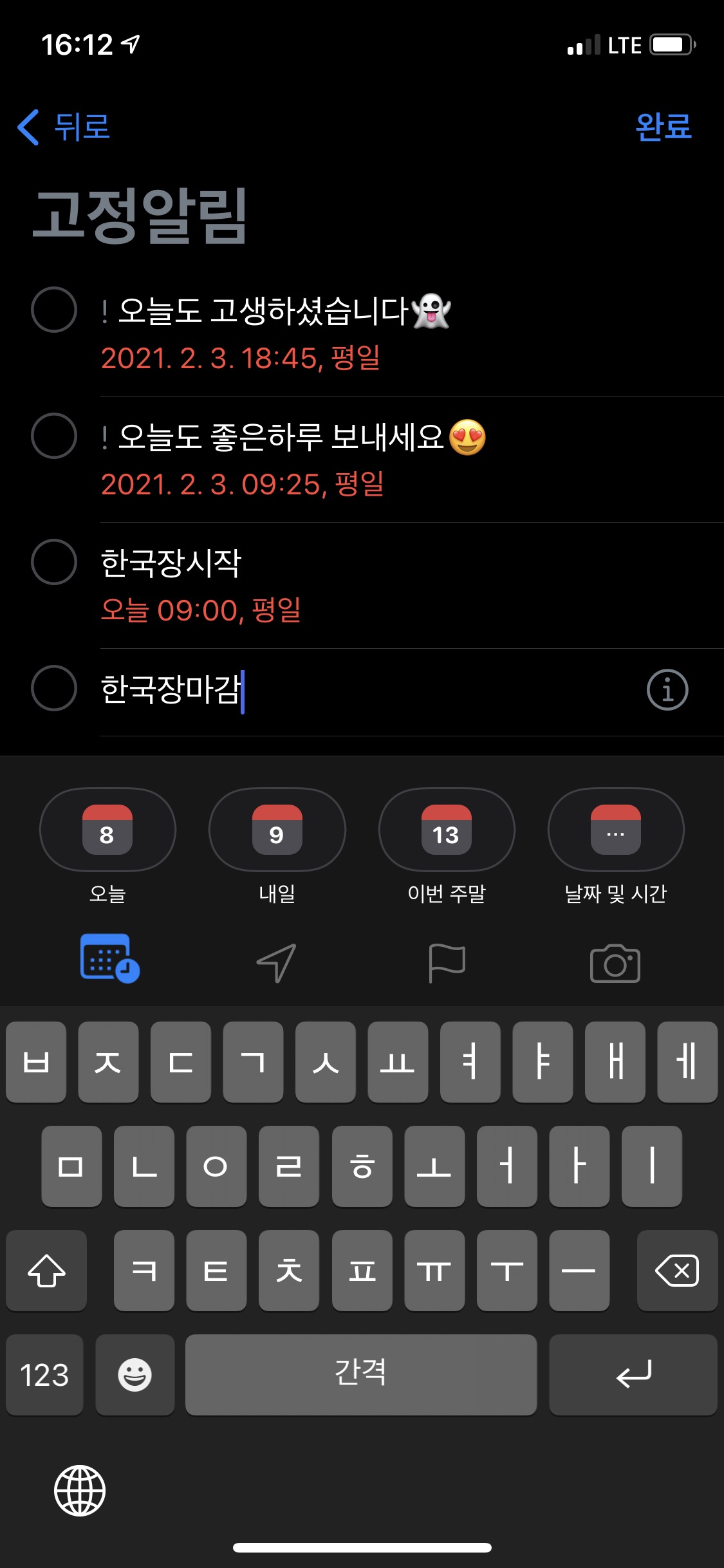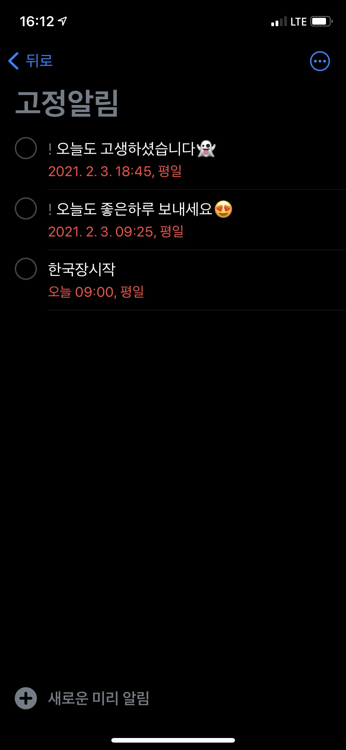 요즘 미리알림을 사용해서 출퇴근 시간이나 주식 시장 시작, 마감 등