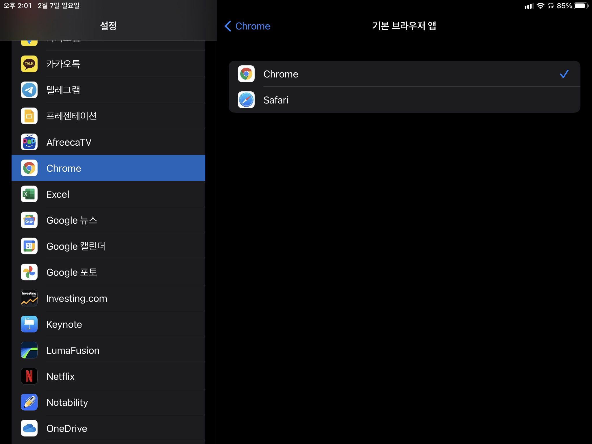 아이폰이나 아이패드에서 초기 설정은 URL 주소에 들어갈 때 애플의 기본 브라우저인 사파리로 연결됩니다