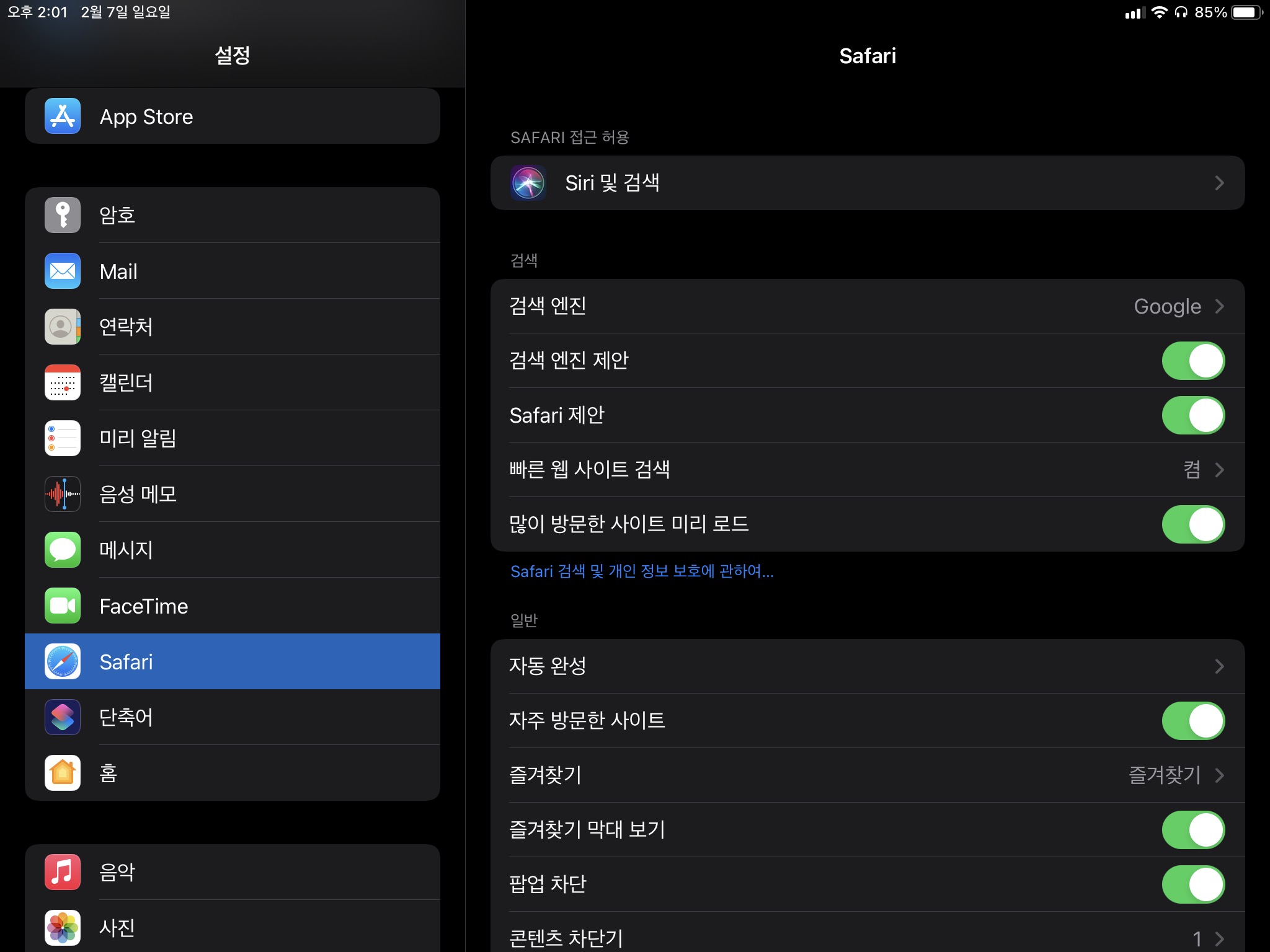 사파리 탭으로 오시면 애플에서 제공하는 기본 브라우저인 만큼 많은 기능을 지원하고 있습니다