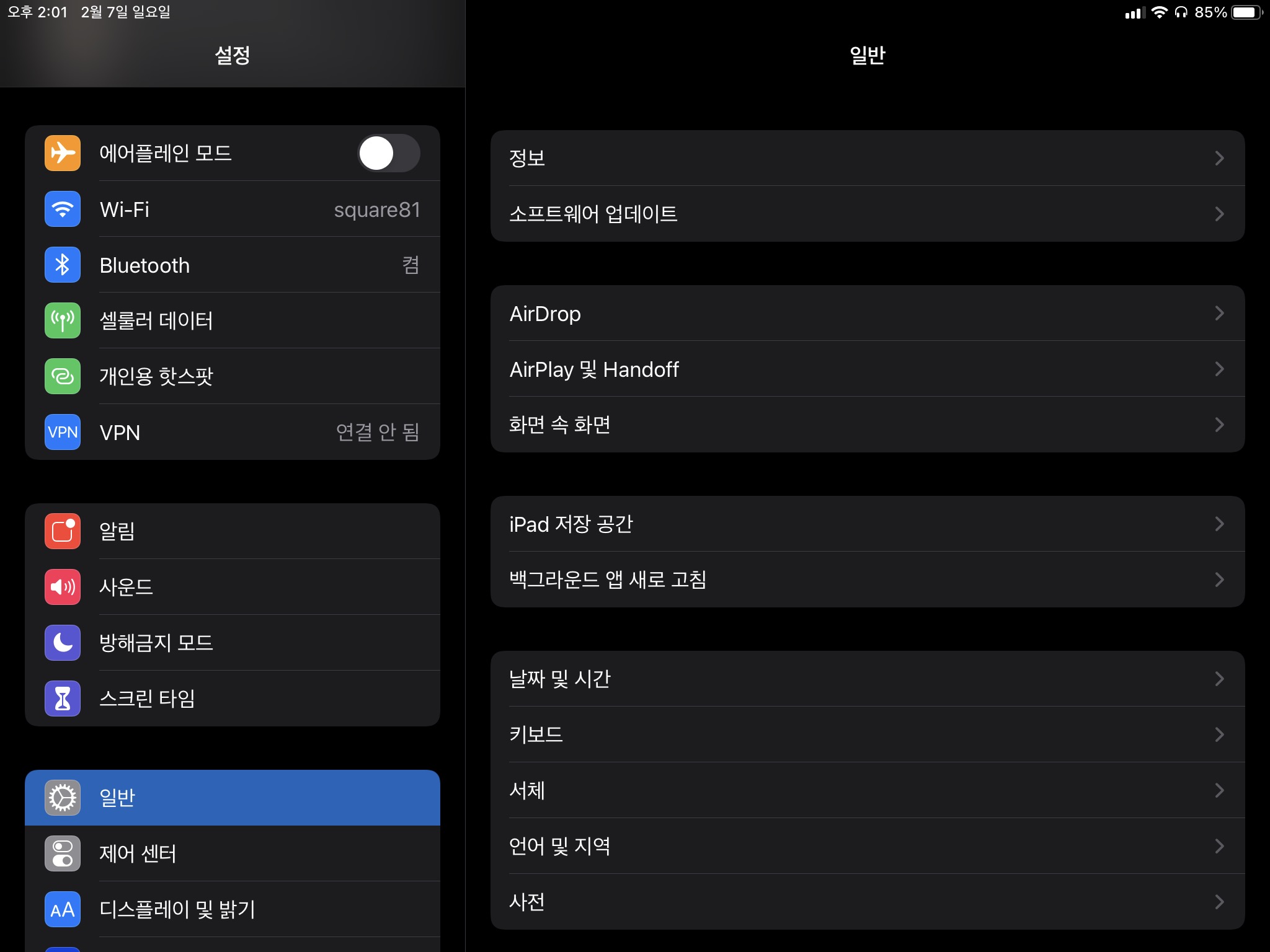 아이패드나 아이폰의 "설정" 앱으로 들어와 주세요