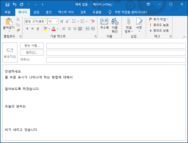 outlook, 워드, 파워포인트 오피스 줄 바꿈 표시 하는 방법