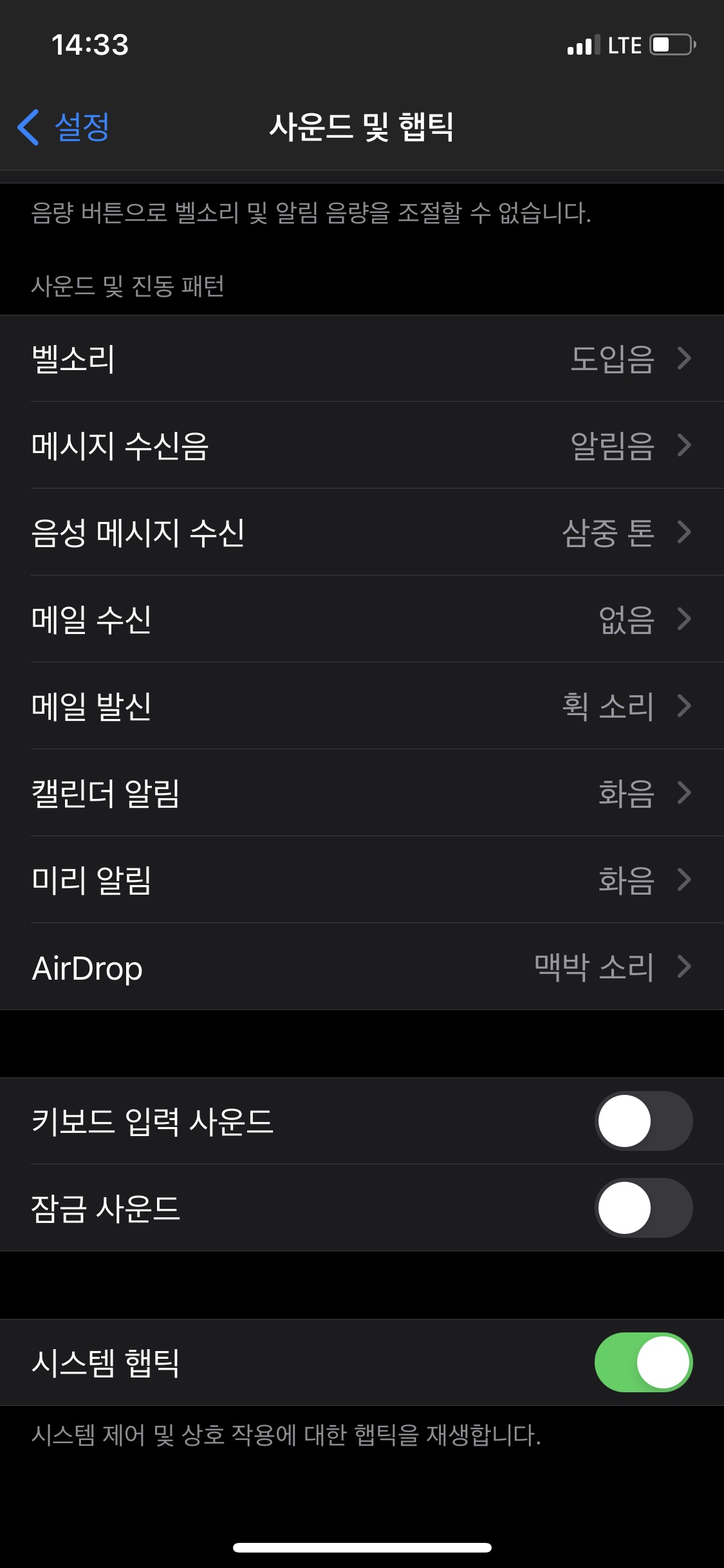 "시스템 햅틱" 을 켜주시면 됩니다!