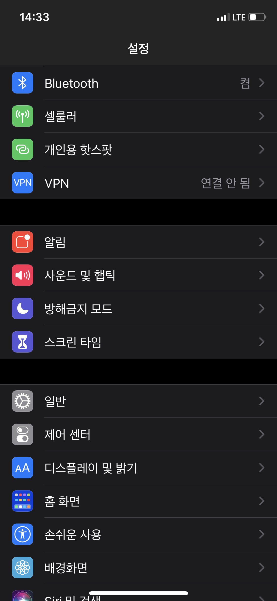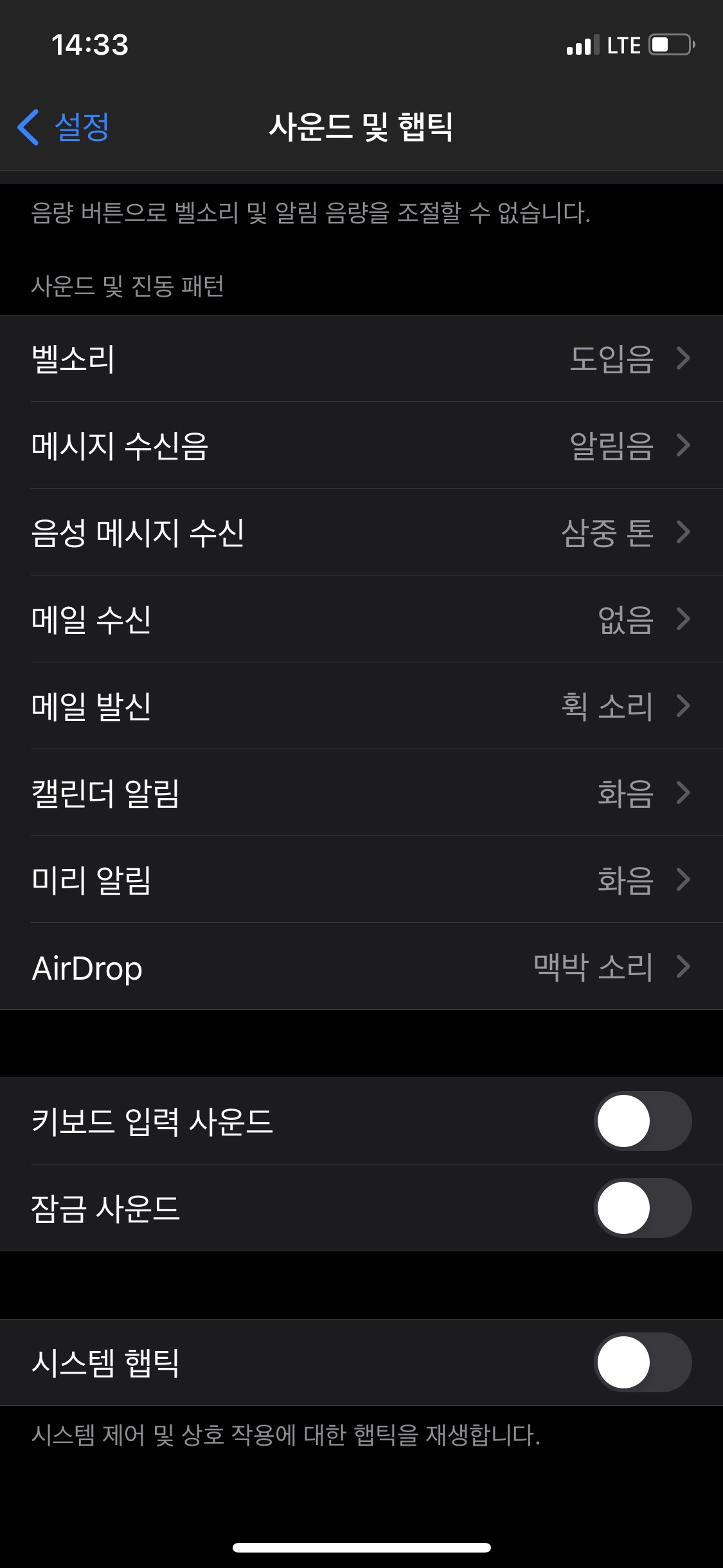 여기서 "사운드 및 햅틱" 으로 들어갑니다