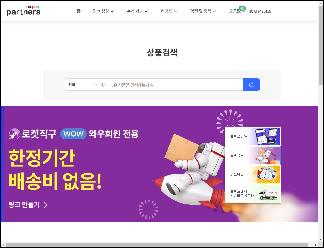 쿠팡 파트너스 광고 가입방법 / 추천인 코드 : AF7493436