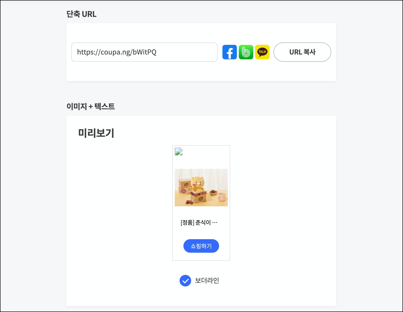 단축 URL 부분의 링크가 필요하니 창은 닫지말고 다음 단계를 진행해 주세요 😃