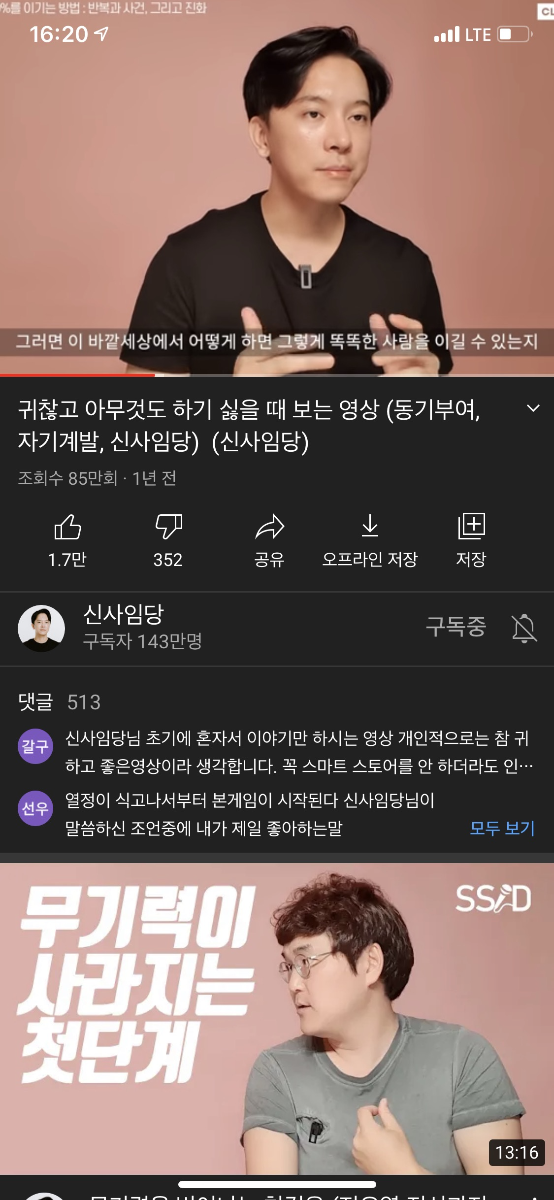 유튜브 화면에서 화면을 클릭하시고 위로끌어 주시면 전체모드로 바뀌는 것을 볼 수 있습니다