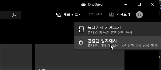 여기서 "연결된 장치에서" 가져오기를 클릭해 줍니다