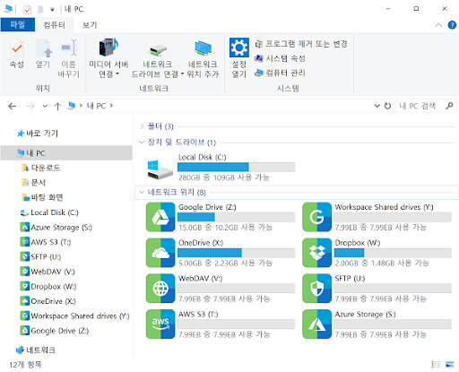 파일 탐색기의 네트워크 드라이브처럼 사용할 수 있게 도와주는 프로그램입니다.